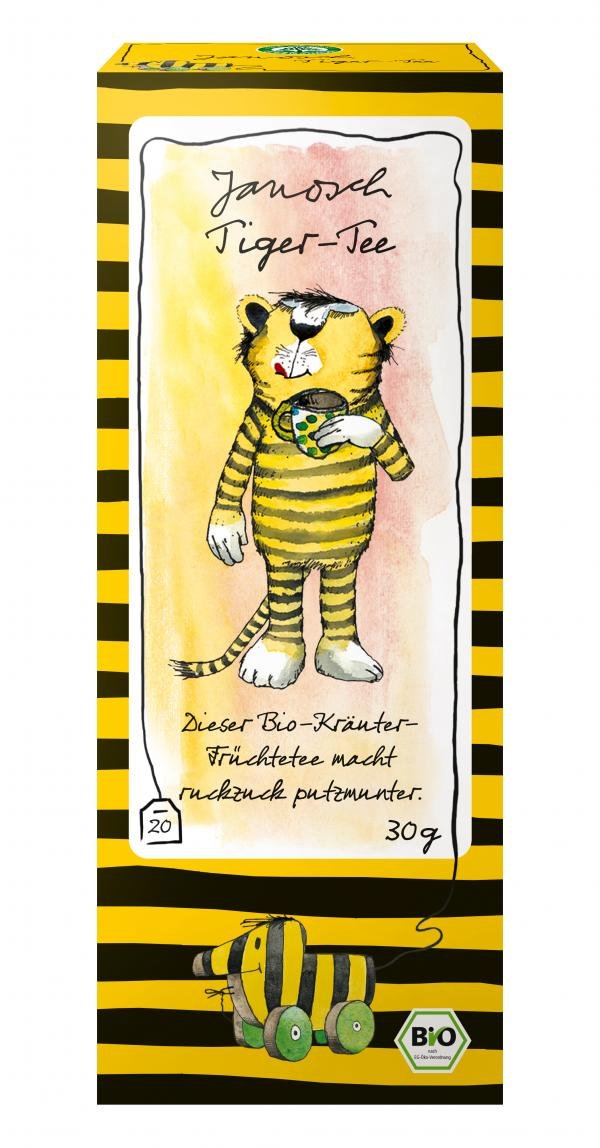 Würzig und kräftig – wie eine Tigerumarmung. Dieser Bio-Kräuter-Früchtetee macht ruckzuck putzmunter. Mit Rooibos und Zitronengras. Der Kleine Tiger steht morgens auf und kocht eine Tasse für seinen Freund den Kleinen Bären und eine für sich selbst.