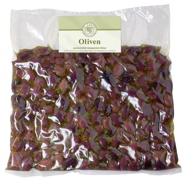 Kalamata-Oliven* (87%) (Meersalz, Weinessig*), Rapsöl* (12%) (kaltgepresst), Knoblauch*, Petersilie*, Oregano*