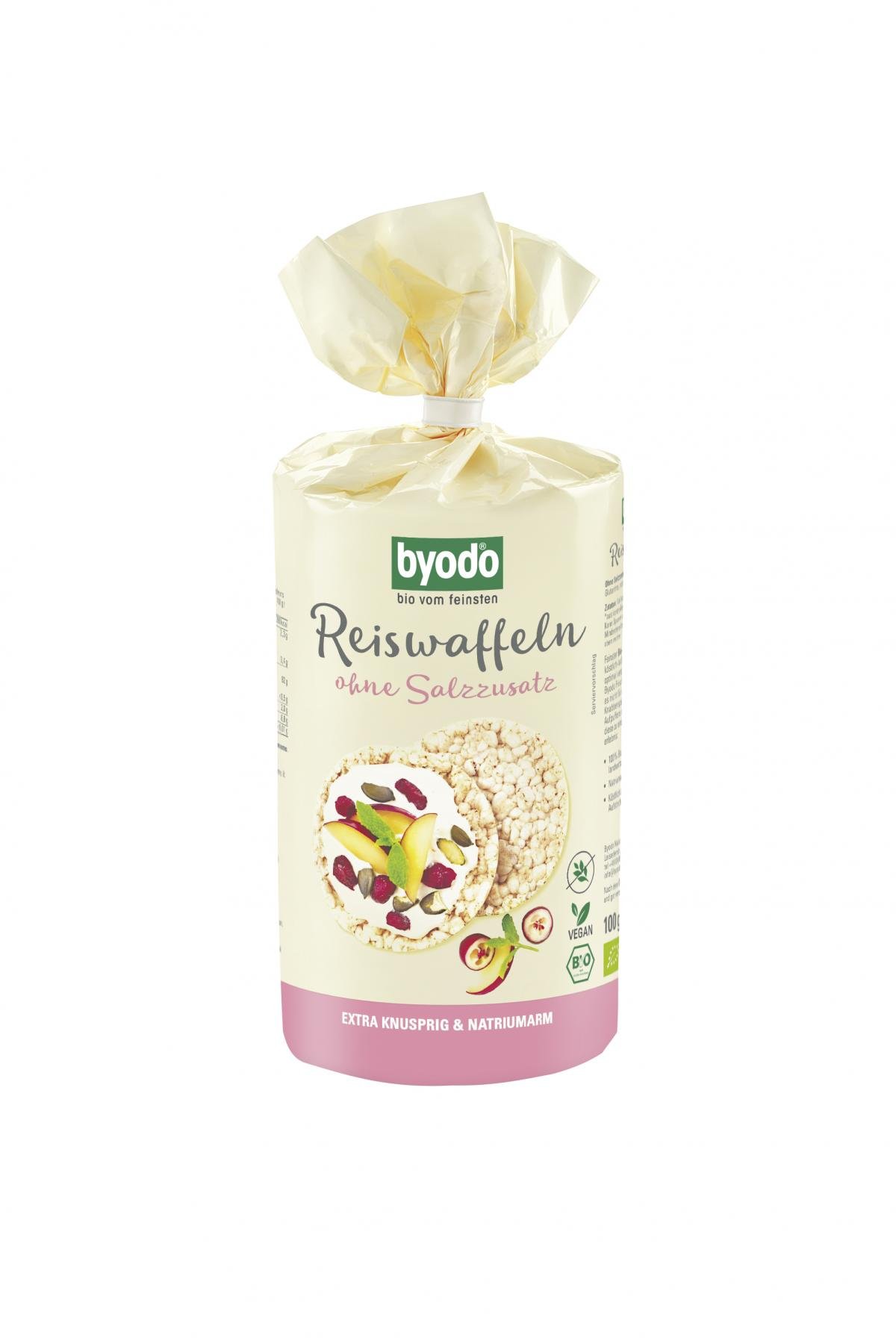Die Byodo Reiswaffeln ohne Salz werden aus feinem Bio-Vollkornreis locker aufgepufft. Die knusprigen Scheiben sind absolut pur im Geschmack.