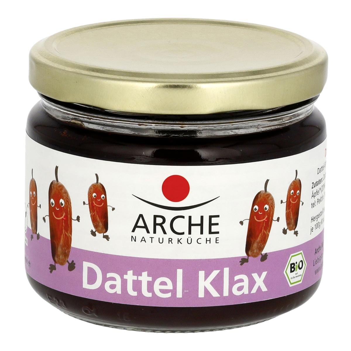 Zum Draufstreichen! Natürlich süß und mild-fruchtig mit satten 99 % Fruchtanteil! Dieses Bio Dattelkraut aus Datteln, Birnen und Äpfeln schmeckt als Brotaufstrich, zu Waffeln, auf Pfannkuchen… Übrigens - Arche Klaxe sind Kraute. Das kommt vom Rübenkraut und hat Geschichte, denn ursprünglich wurden die Blätter von Rüben fein geschnitten und ähnlich wie Rotkraut als Gemüse gekocht. Aus den Rüben gewann man durch Einkochen Sirup und nannte es zu Beginn des 18. Jahrhunderts einfach genauso. Arche Dattel Klax ist vegan und kommt ohne Zuckerzusatz aus!