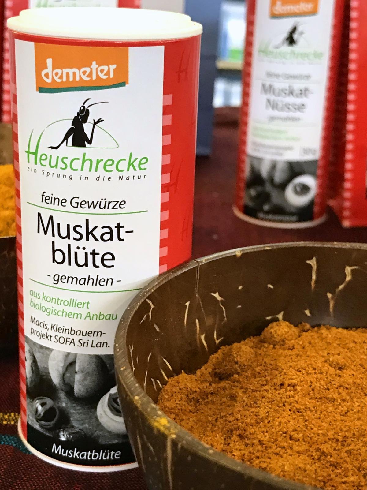 Feiner und duftiger als Muskatnuß. Verwendung: Cremesuppen, Soßen, Gemüse, Fleisch, Süßspeisen, Milchreis, Weihnachtsgebäck.