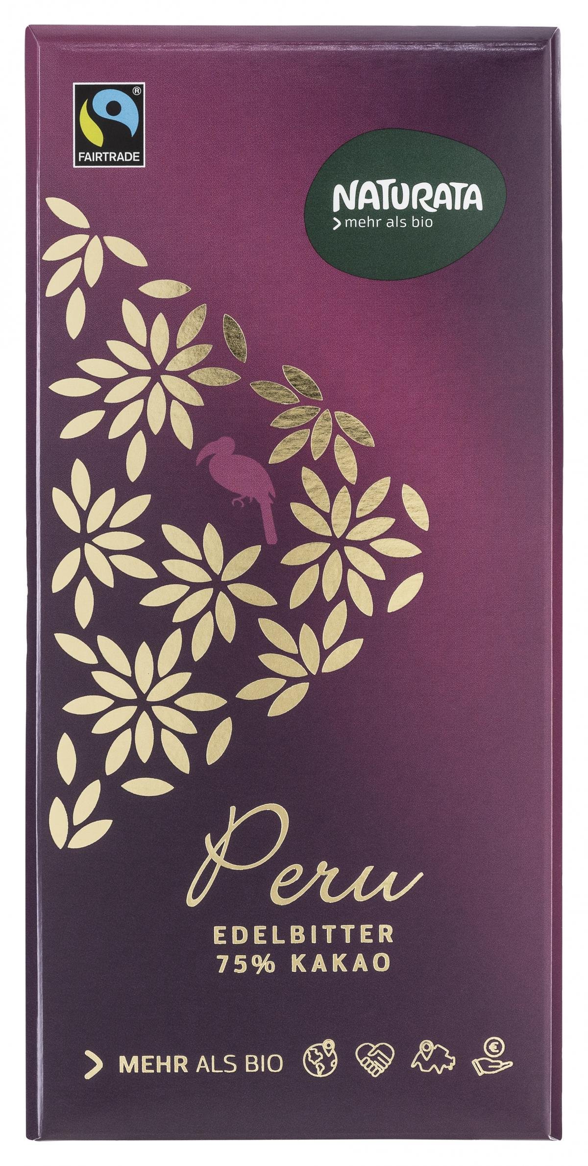 Wie bei allen Naturata Schokoladen enthält die natürliche Rezeptur nur fair gehandelte Zutaten aus 100 % kontrolliert biologischem Anbau. Ohne künstliche Aromen oder Emulgatoren!