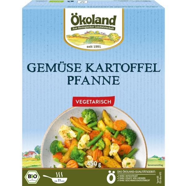 Herzhafte Gemüse-Mischung (66%) mit frittierten Kartoffeln, fein abgeschmeckt, tiefgefroren. Für die Ökoland Tiefkühlgerichte werden ausschließlich hochwertige Bio-Zutaten verwendet. Das Gemüse wird erntefrisch eingefroren, sodass Vitamine, Mineral- und Nährstoffe optimal erhalten bleiben.