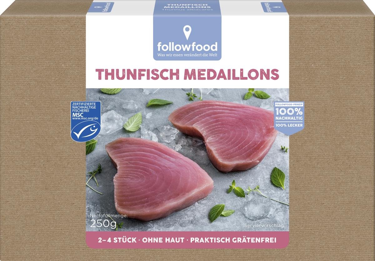 Der followfood Thunfisch stammt aus nachhaltigem, MSC-zertifiziertem Wildfang im Mittleren Westpazifik und Mittleren Ostpazifik und wird fangfrisch verarbeitet.