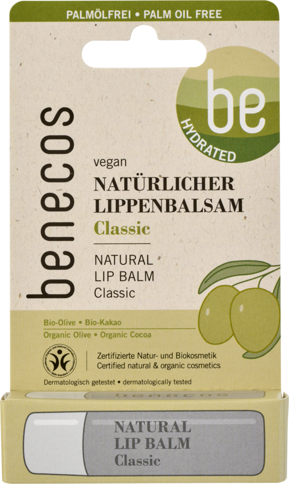 Cremiger Lippenpflegestift im Blister mit Bio-Olivenöl & Bio-Kakaobutter. Parfümfrei.