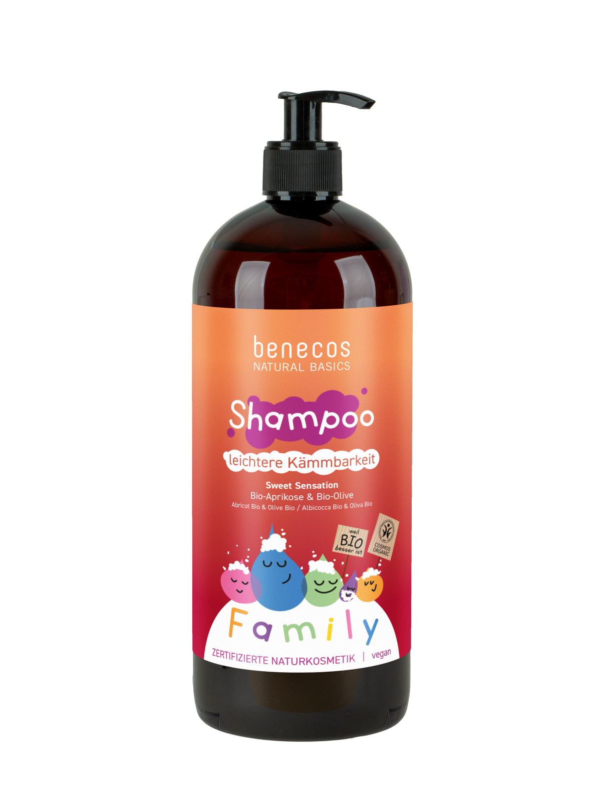 Das milde Shampoo schenkt Groß und Klein dank beruhigendem Bio-Aprikosenkernöl, feuchtigkeitsspendendem Bio-Olivenöl und regionalem Bio-Apfelsaft geschmeidig-schöne Haare. On top sorgt Guar, eine pflanzliche Komponente, für eine leichtere Kämmbarkeit.