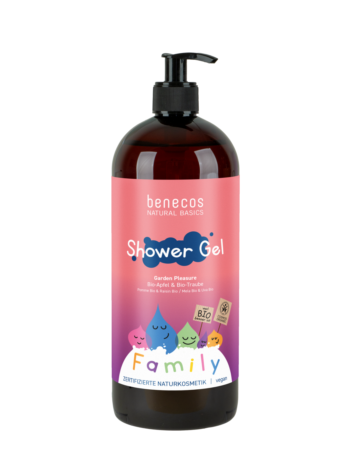 Ein fruchtig duftendes Duschgel für die ganze Familie. Die Pflegeformel aus antioxidativ wirkendem Bio-Traubenextrakt und regionalem Bio-Apfelsaft reinigt die Haut sanft, aber gründlich – gute Laune im Badezimmer, für Groß und Klein.