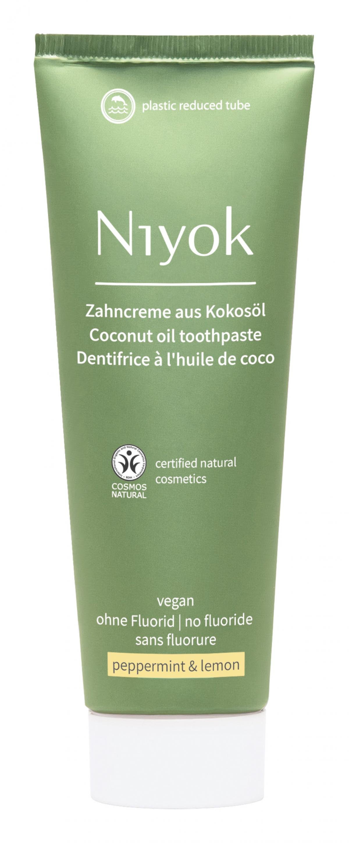 Die natürliche Zahncreme aus Kokosöl von Niyok schützt Zähne und Zahnfleisch. Hochkonzentriertes Bio-Kokosöl beugt Entzündungen vor und wirkt anti-bakteriell. Milde Putzkörper aus Calciumcarbonat reinigen die Zahnoberflächen gründlich und wirken remineralisierend (ohne Fluorid). Xylit komplettiert den Wirkstoffkomplex, indem es Kariesbakterien an der Reproduktion hindert. Verpackt in einer plastikreduzierten Kreide-Tube.