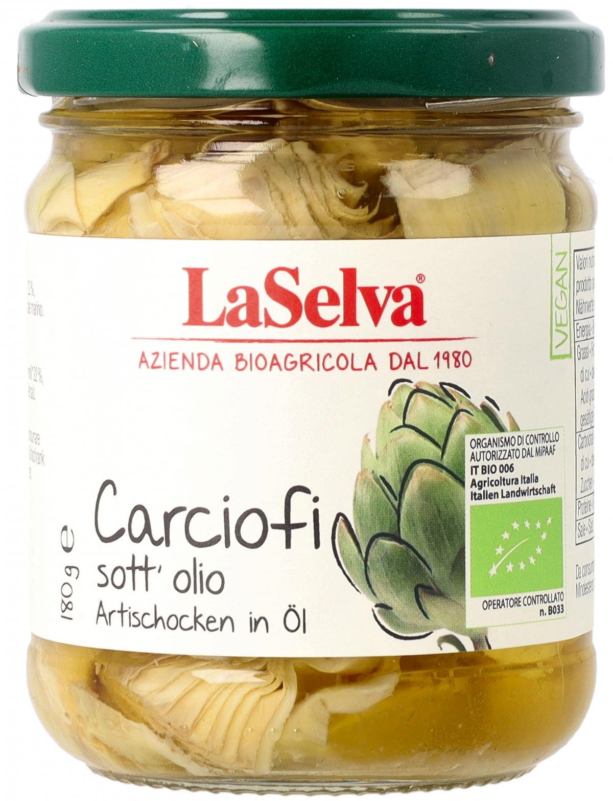 Die zarten Artischockenviertel sind einfach in Wasser und Essig blanchiert und in einer Mischung aus Sonnenblumen- und Olivenöl extra vergine eingelegt, um die Frische und den Geschmack der "Carciofi" zu betonen.