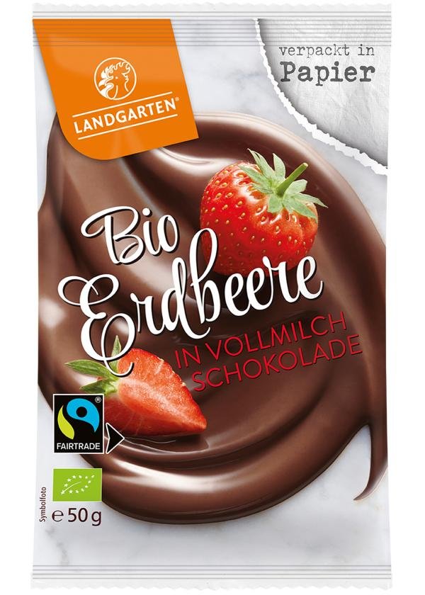 Vollmilchschokolade* 90% (Rohrzucker*, Kakaobutter*, VOLLMILCHPULVER*, Kakaomasse*, Emulgator: Lecithine (SOJA*)), Erdbeeren* 8%, Überzugsmittel: Gummi arabicum*; Zucker*, Dextrose*.. Kakao: 37% mindestens in der Vollmilchschokolade. Fairtrade-Kakao und Fairtrade-Rohrzucker können als Mengenausgleich mit nicht zertifiziertem Kakao und Rohrzucker vermischt werden. Mehr Info: info.fairtrade.net/sourcing Gesamtanteil: 70 %.