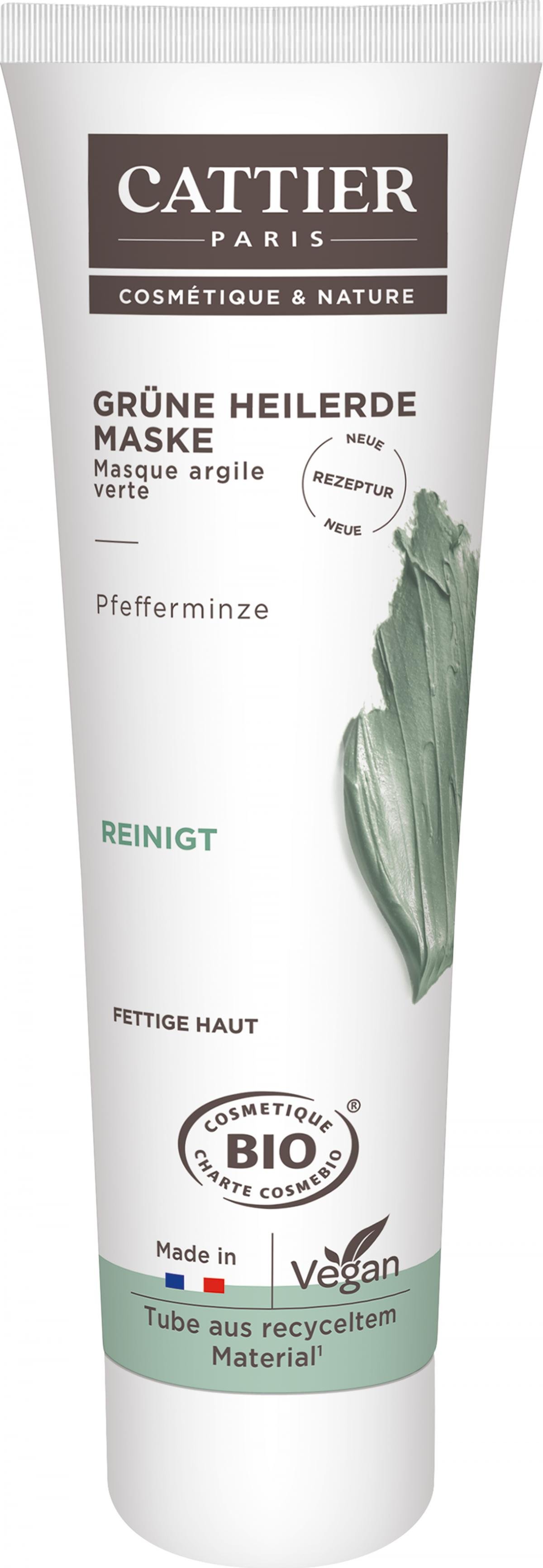 Die grüne Heilerde Maske reinigt die Haut, reduziert Hautunreinheiten, hilft überschüssigen Talg aufzunehmen und die Haut wieder ins Gleichgewicht zu bringen. Die Haut wirkt matter, ist geklärt, gepflegt und genährt. Die Formel enthält 45% Heilerde, ist angereichert mit ätherischem Bio Pfefferminzöl, was klärend und erfrischend wirkt, und feuchtigkeitsspendendem Bio Aloe Vera. Sie hat eine cremige und geschmeidige Textur, für ein einfaches Auftragen. Außerdem trocknet sie langsam auf der Haut, sodass Mineralstoffe und Spurenelemente von der Haut gut aufgenommen werden können. Sie ist vegan und bio-zertifiziert. Sie ist durch ihre Komposition aus grüner und weißer Heilerde ideal geeignet für fettige Haut.