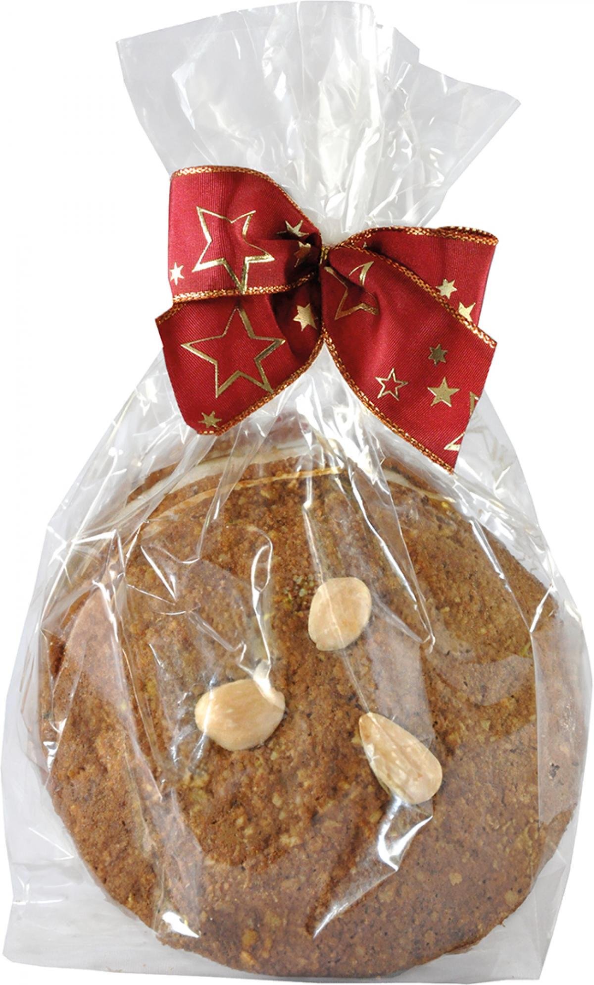 HASELNUSSKERNE* geröstet, Rohrohrzucker*, Orangeat* (Orangenschalen*, Glukose-Fruktose-Sirup*, Zitronensaft*), Zitronat* (Zitronenschalen*, Glukose-Fruktose-Sirup*, Zitronensaft*), Aprikosenkonfitüre* (Rohrohrzucker*, Aprikosen*, Zitronensaftkonzentrat*, Geliermittel: Pektin), Marzipan* (MANDELN* 3,7%, Rohrohrzucker*, Wasser, Invertzuckersirup*), MANDELN* geröstet, MANDELN* blanchiert 3,4%, Gewürze* (Zimt*, Koriander*, Anis*, Nelken*, Ingwer*, Fenchel*, Piment*), Oblate* (DINKELMEHL*°, Kartoffelstärke*), HÜHNEREIEIWEISSPULVER*, Backtriebmittel: Natriumhydrogencarbonat