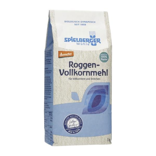 Für das Roggen-Vollkornmehl wird besten demeter-Roggen verwendet. In der Spielberger Mühle wird das Getreide in mehreren Schritten mit größter Sorgfalt und Fingerspitzengefühl zu diesem vollwertigen Mehl vermahlen, das alle wertvolle Bestandteile des Korns enthält. Roggen hat einen kräftigen, herzhaften Geschmack. Das Vollkornmehl eignet sich das Getreide besonders für herzhafte Vollkornbrote und Brötchen.