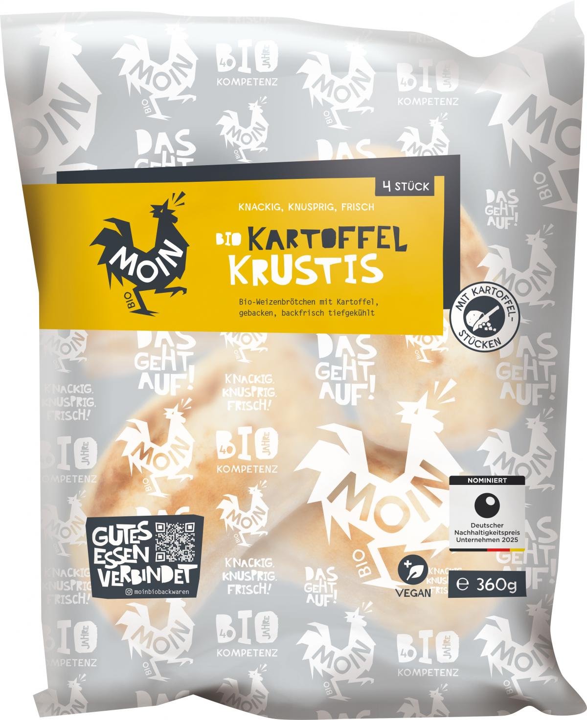 Leckere Kraftpakete aus Korn und Kartoffel – diese vier knusprigen Bio-Weizenbrötchen mit saftigen Kartoffelstückchen geben extra Power für den Tag. Langzeitgeführt und natürlich ohne den Zusatz technischer Enzyme. Vier Krustis pro Packung, gebacken, backfrisch tiefgekühlt.
