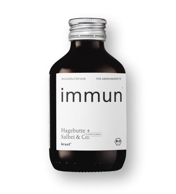 Deine Dosis Wildkräuter. Das Vitamin C der Hagebutte unterstützt das Immunsystem*. Spitzwegerich, Salbei und der wilde Thymian runden die Rezeptur ab.
