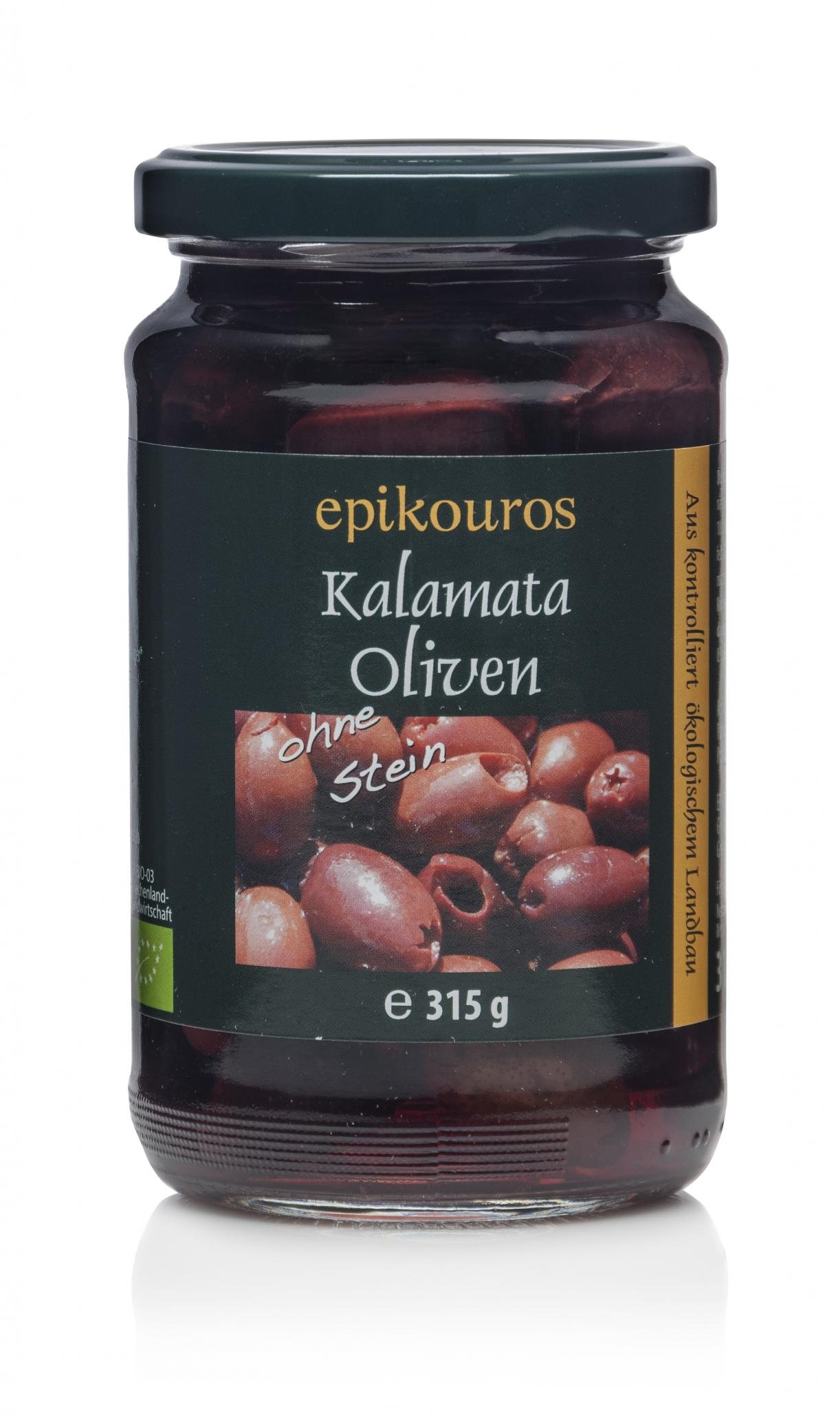 Kalamata-Oliven*, Wasser, Meersalz, Weinessig*