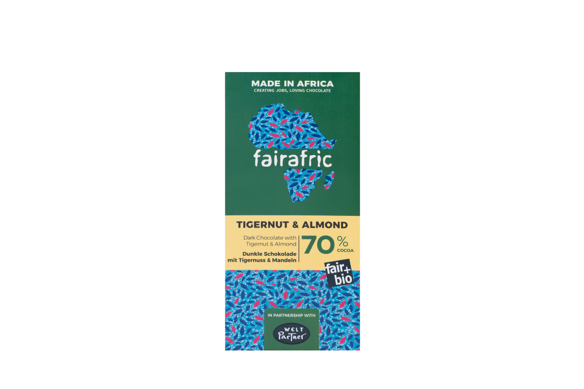 Das Erdmandelmehl (im englischen Tigernut - deswegen Tigernuss) verleiht unserer 70% BIO-Schokolade eine süß-nussige Note, die durch Mandel-Splitter weiter betont wird. Eine wunderbare Erweiterung unserer milden, aber doch herben Schokolade mit 70% Kakaoanteil.
