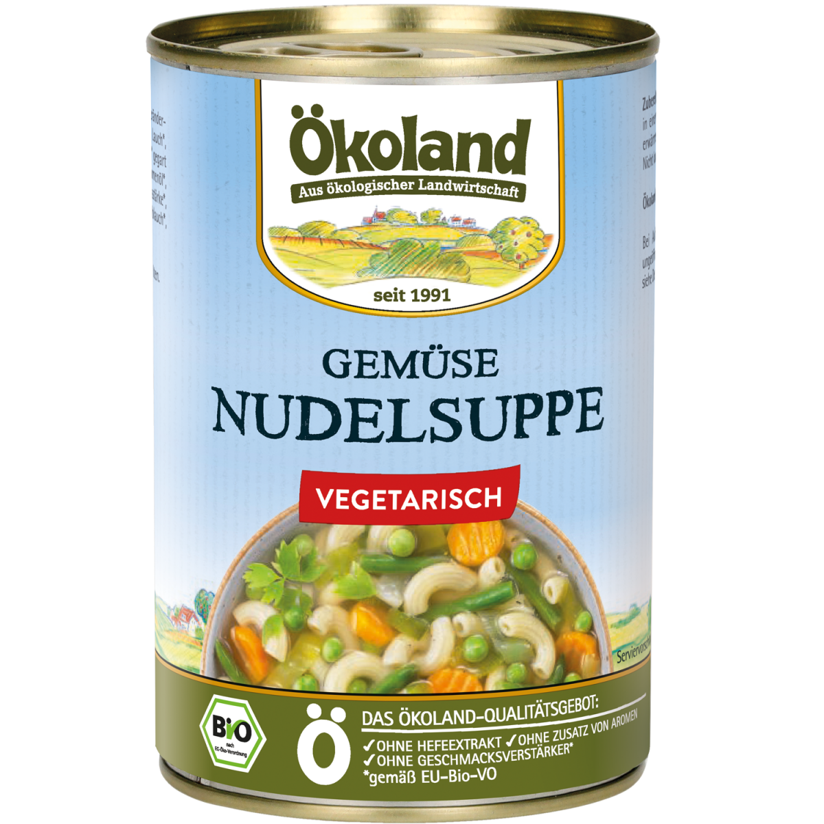 Eine schöne kräftige Gemüsesuppe ist das passende Gericht, wenn es in der Küche einmal schnell gehen muss. Die Ökoland Gemüse-Nudelsuppe wird mit der reichhaltigen Einlage traditioneller Gemüsesorten und Nudeln zu einer sättigenden und leckeren Mahlzeit. Alle Zutaten sind extra ausgewählt und so fein aufeinander abgestimmt, dass sie unserer Gemüsesuppe ihren delikaten, unverwechselbaren Geschmack verleihen.