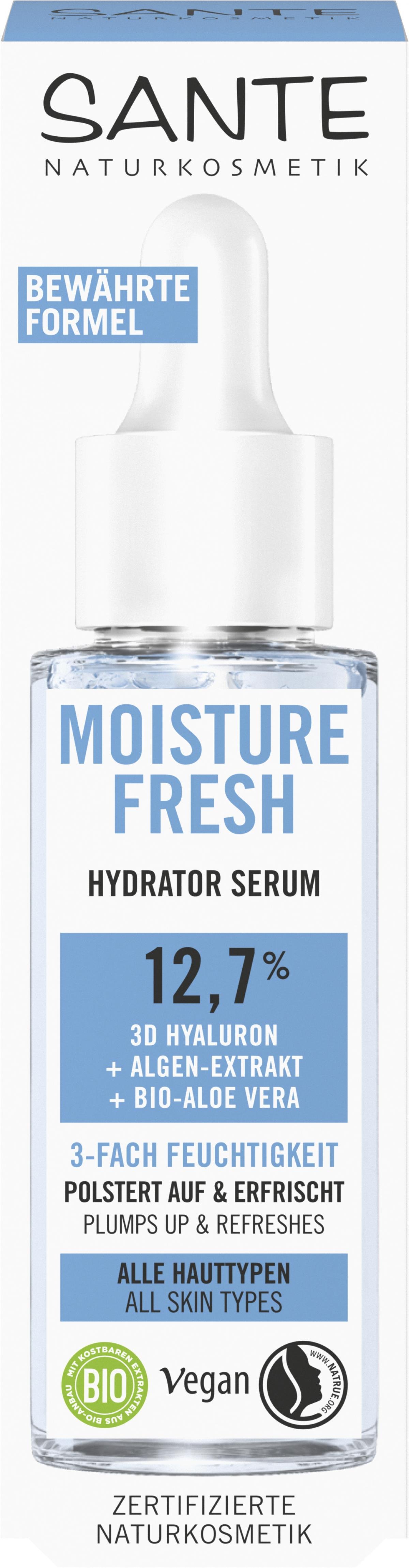 Eine natürlich wirksame Serum-Komposition dreier Wirkstoffe,welche die Haut mit 3-fach Feuchtigkeit versorgt:Bio-Aloe Vera + Glycerin: Erfrischt die Haut und spendet intensive Feuchtigkeit. Hyaluron: Besitzt eine hohe Wasserspeicherkapazität, polstert somit die Haut auf und mildert feine Linien. Intensive Hydratation. Polstert auf und erfrischt. Glättet die Haut. Mildert feine Linien. Verleiht einen ebenmäßigen frischen Teint. Für intensiv hydratisierte, erfrischte und aufgepolsterte Haut.