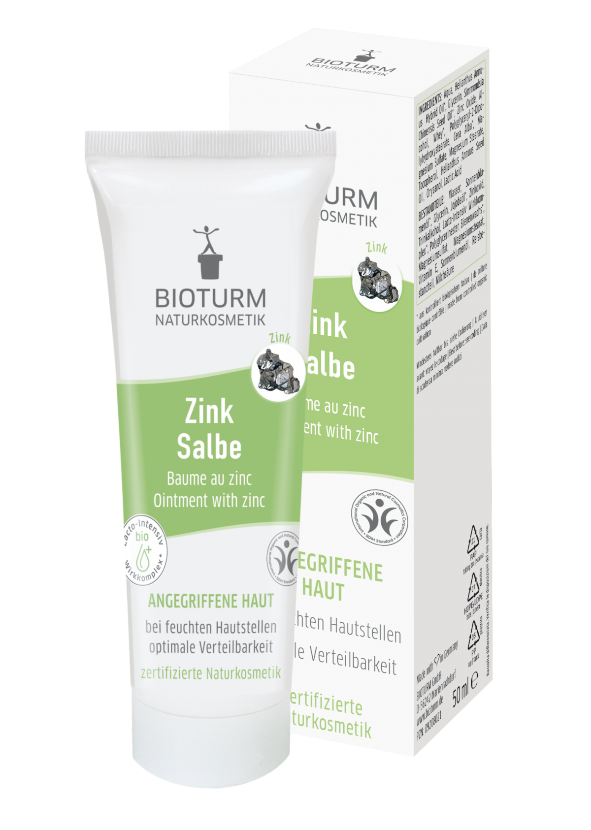 Durch seine antimikrobielle Eigenschaft wirkt Zink desinfizierend und entzündungshemmend und trocknet nässende, aufgeschürfte und angegriffene Hautstellen aus. Im Windelbereich bei Babys sowie auch bei Pickeln und Pusteln während der Pubertät verhilft die Zink-Salbe zu einem spürbar besseren Hautbild. Der Lacto-Intensiv Wirkkomplex wirkt zusätzlich normalisierend; Bio-Sonnenblumenöl, Bio-Jojobaöl und Bio-Bienenwachs machen die Haut geschmeidiger.