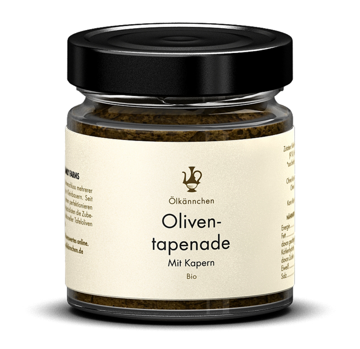 Fruchtig frische Bio Tapenade aus Kalamon Tafeloliven mit Kapern verfeinert - hergestellt nach traditionell griechischem Rezept. Die Herstellung der Olivenpaste beginnt mit der sorgfältigen Auswahl hochwertiger Kalamon Oliven, die gründlich gewaschen und sortiert werden, um Verunreinigungen zu entfernen. Anschließend werden die Oliven einschließlich der Kerne mit modernen Hammermühlen zu einer groben Paste zerkleinert. Durch diesen Prozess werden die natürlichen Öle und Aromen freigesetzt, und die entstandene Paste wird geknetet, um eine gleichmäßige Textur und einen reichen Geschmack zu gewährleisten. Die Olivenpaste wird nach traditionellem griechischen Rezept mit Kapern verfeinert. Die herzhaft fruchtig frische Oliven Tapenade bereichert jede Antipasti Platte, lecker als Aufstrich und würziger Appetizer auf frischem Baguette, als Zutat zu geschmortem mediterranen Gemüse, zu Grillgerichten und für die kreative Küche ein Gedicht. Seit über 20 Jahren widmet sich der Oliven- und Tapenadenspezialist Vangelis Kaltas der Zubereitung traditioneller Tafeloliven, Pasten und Tapenaden, die minimal verarbeitet und frei von Konservierungs- und Zusatzstoffen sind. Vangelis war einst selbst Olivenbauer auf der Insel Thassos, musste jedoch nach einem alles vernichtenden Feuer seine Ländereien verlassen und verlegte seine Produktionsstätte nach Athen. Die von Evangelos verarbeiteten Zutaten stammen von Family Farms. Diese Kooperative hat er mit befreundeten Olivenbauern gegründet, geeint durch die Idee und Umsetzung der nachhaltigen ökologischen Landwirtschaft und der natü