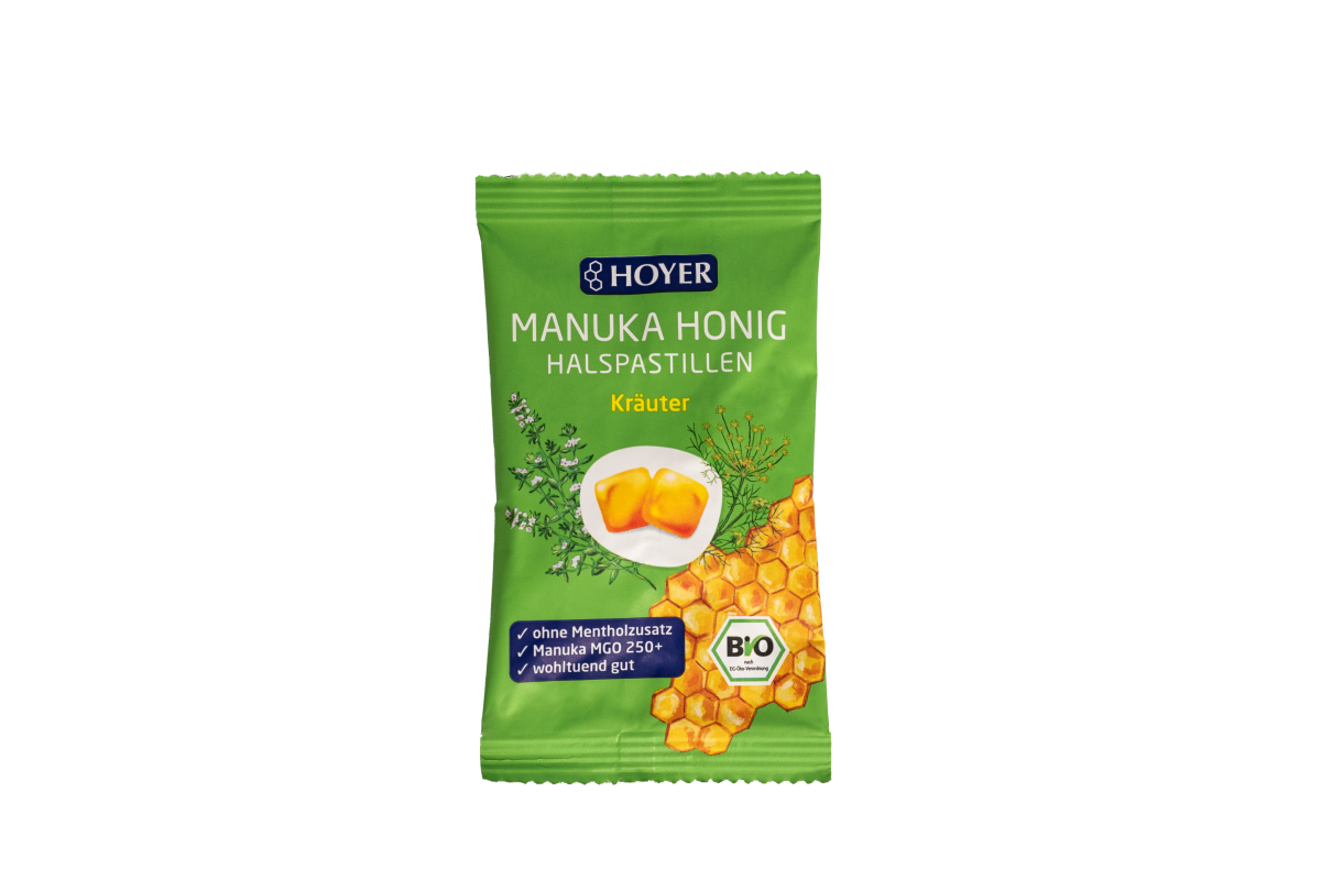 HOYER Manukahonig Halspastillen mit echtem neuseeländischen Manukahonig und Kräutern