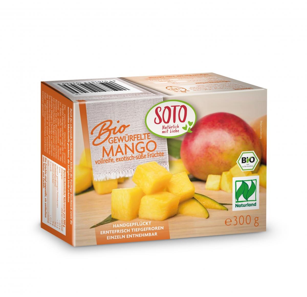 Bio gewürfelte Mango, vollreife, exotisch-süße Früchte, handgepflückt, erntefrisch tiefgefroren, einzeln entnehmbar