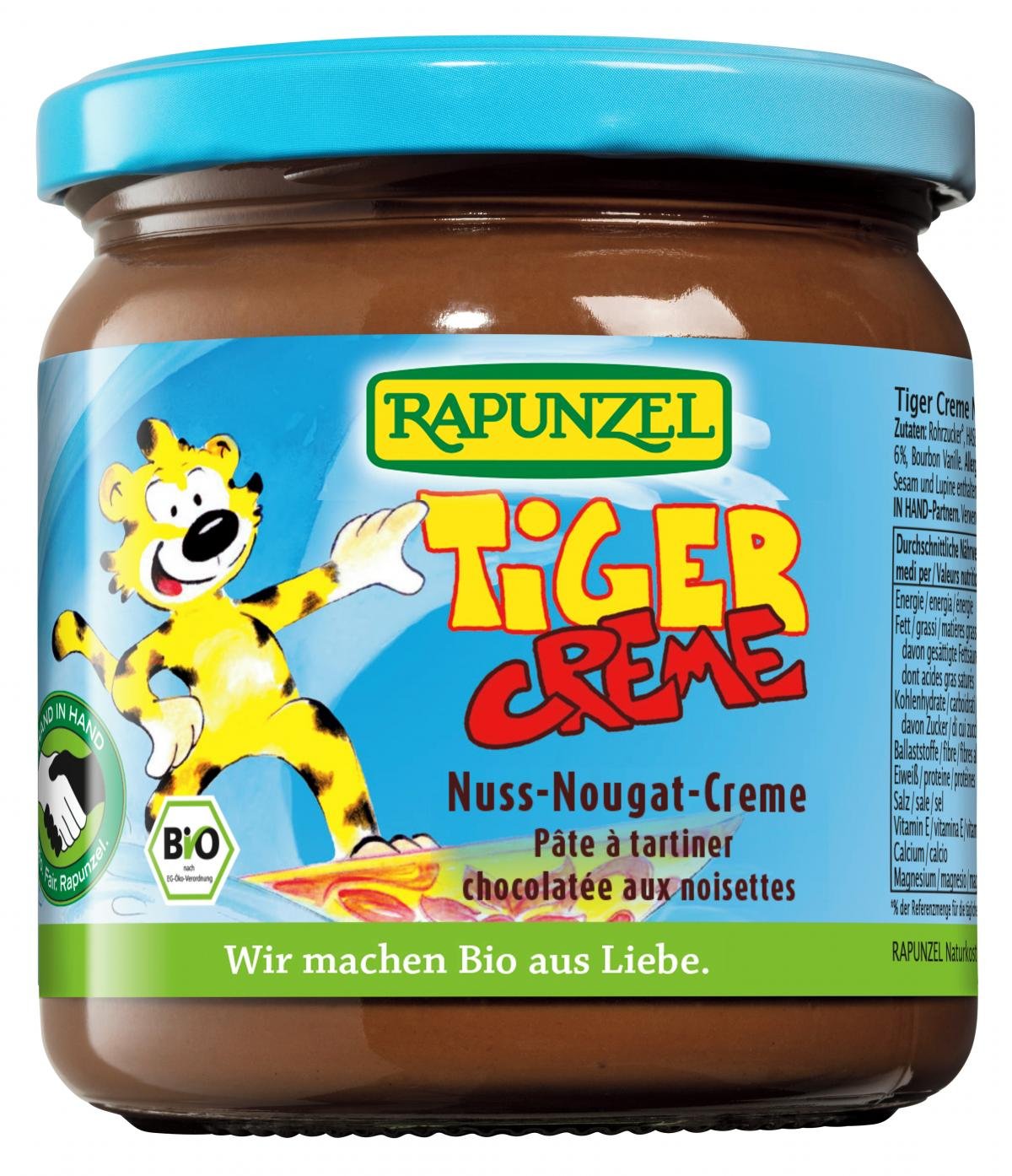 Frisch geröstete Haselnüsse, leckerer Kakao und Milch machen den 'Tiger' super schokoladig und cremig. Kakao, Cristallino Rohrzucker und Palmöl sind fair gehandelt und stammen von unseren HAND IN HAND-Partnern. Die Konsistenz ist temperaturabhängig. Bei Zimmertemperatur cremig, im Kühlschrank gelagert fest.